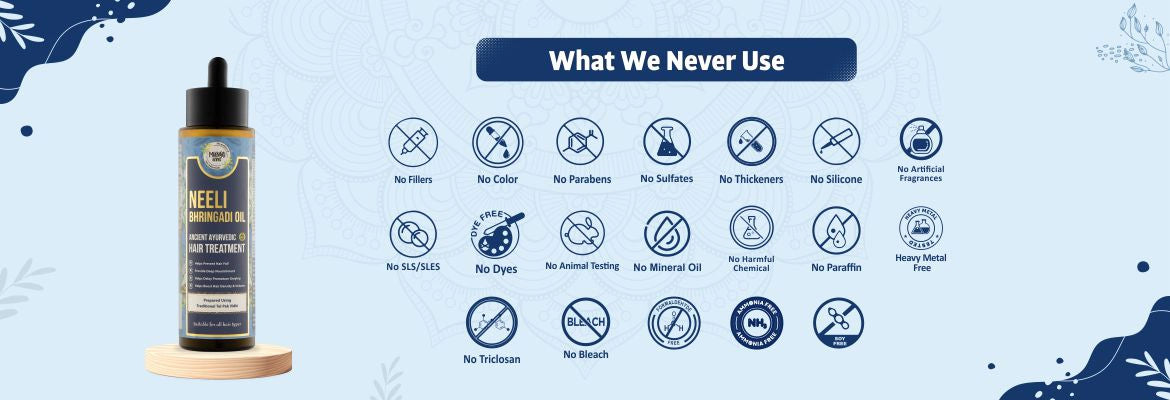 Mango Herbs Hair Pro Neelibhringadi Oil is crafted with purity, safety, and authenticity at its core. It is completely free from Mineral Oil, Parabens, Sulphates, SLS/SLES, Paraffin, Silicon, Artificial Colours, Thickeners, Dyes, Fillers, Artificial Fragrances, Antibiotics, Hormones, Triclosan, Heavy Metals, Formaldehyde, Phthalates, Bleach, and Ammonia.